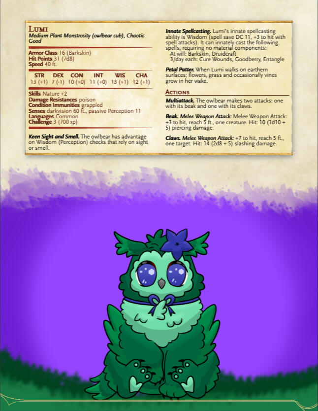 owlbear cub) The tavern pet, Tts Pet, and goofy bean